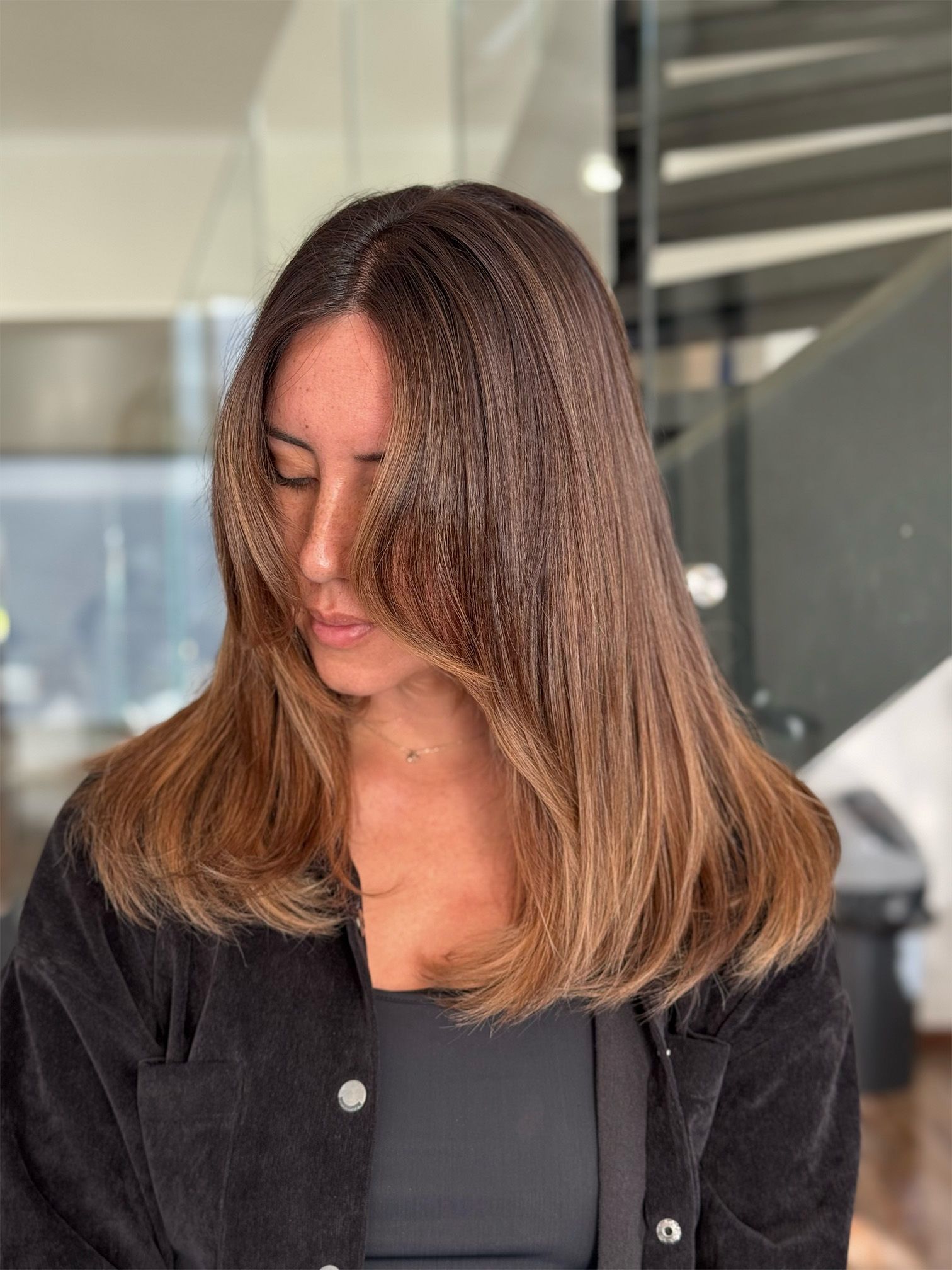 Esta técnica es ideal para quienes desean añadir dimensión y profundidad a su melena oscura sin un cambio drástico. Además, aunque el efecto es más natural, se puede jugar con la intensidad y los tonos, permitiendo desde un sutil toque de luz hasta un contraste más marcado. Diseñado para crecer de manera armónica con tu cabello, el balayage minimiza la apariencia de raíces notorias y prolonga la duración del color, haciéndolo una opción de bajo mantenimiento pero alto impacto.