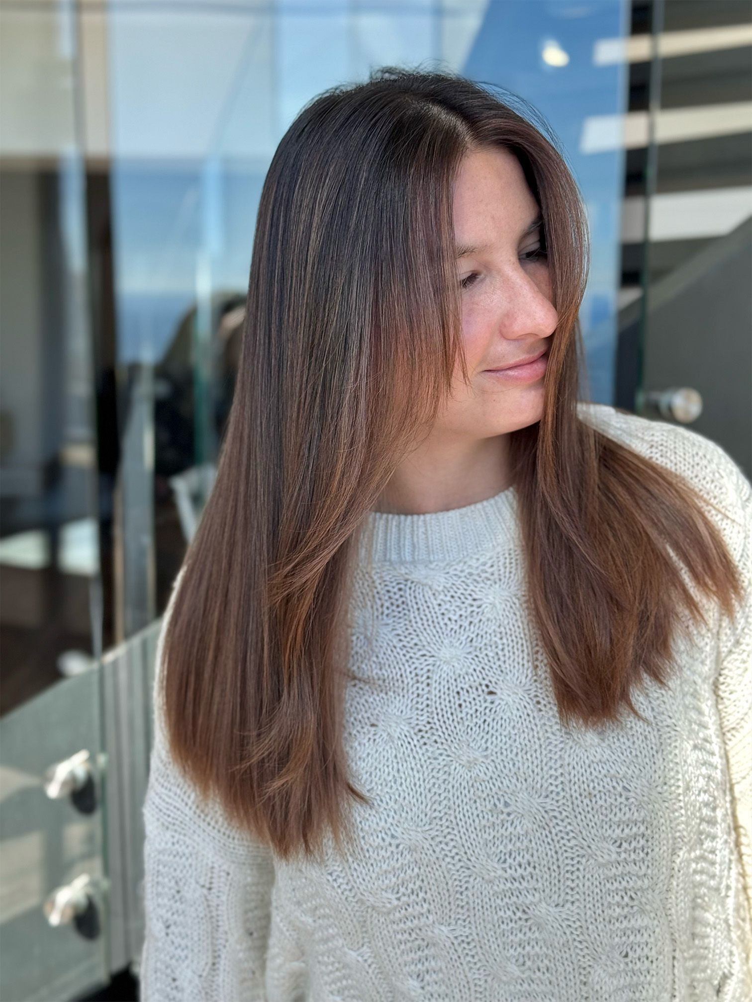 ¿Cómo se debe cuidar un balayage en cabello castaño oscuro para mantenerlo brillante?