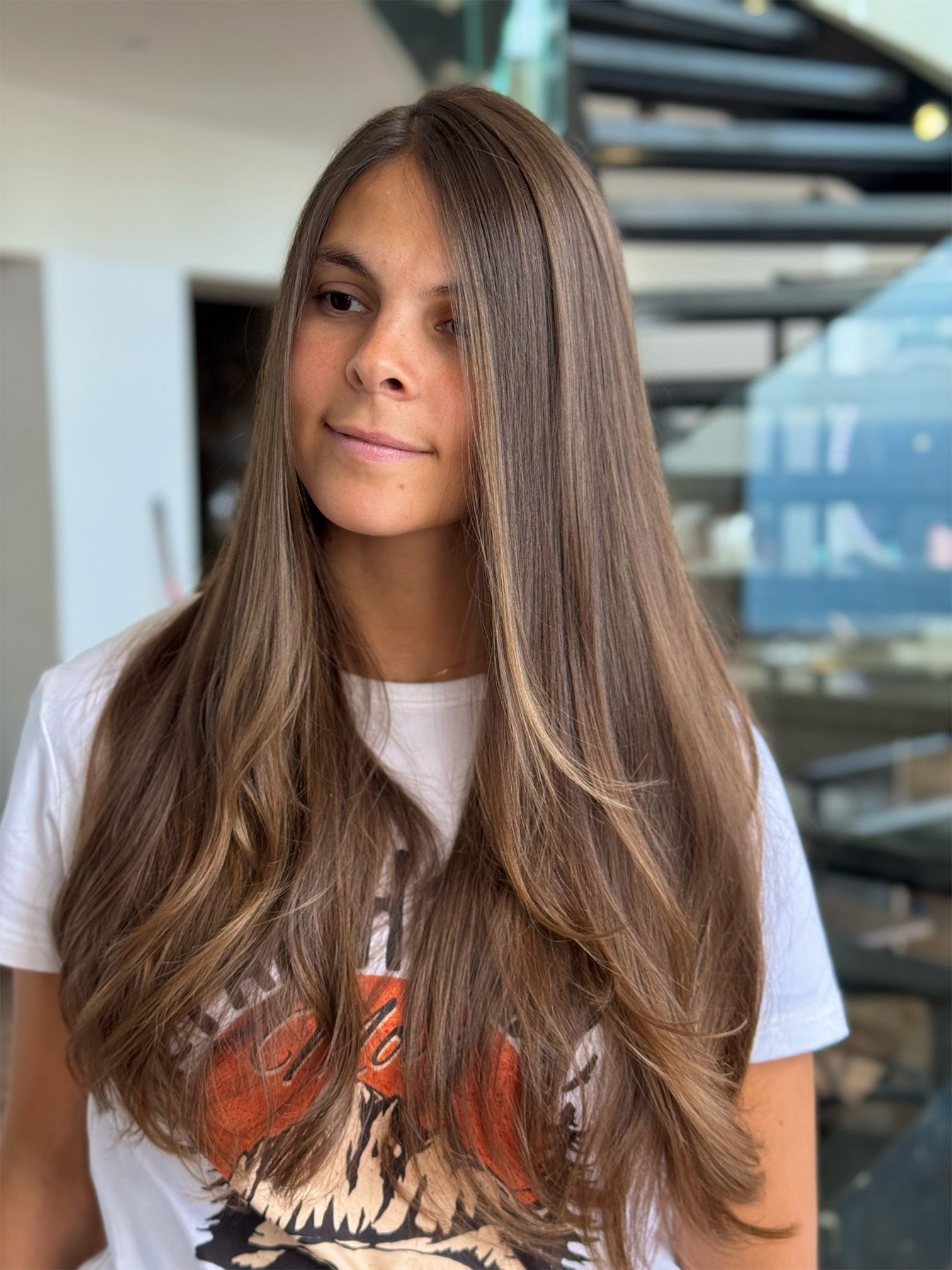 Si tienes el cabello castaño oscuro, esta técnica puede iluminar sutilmente las puntas y a lo largo de las capas, creando un efecto armonioso que complementa naturalmente tu tono de piel y estilo personal. Ya sea que busques reflejos delicados o un contraste más audaz, el balayage se ajusta a tus necesidades y deseos estilísticos.